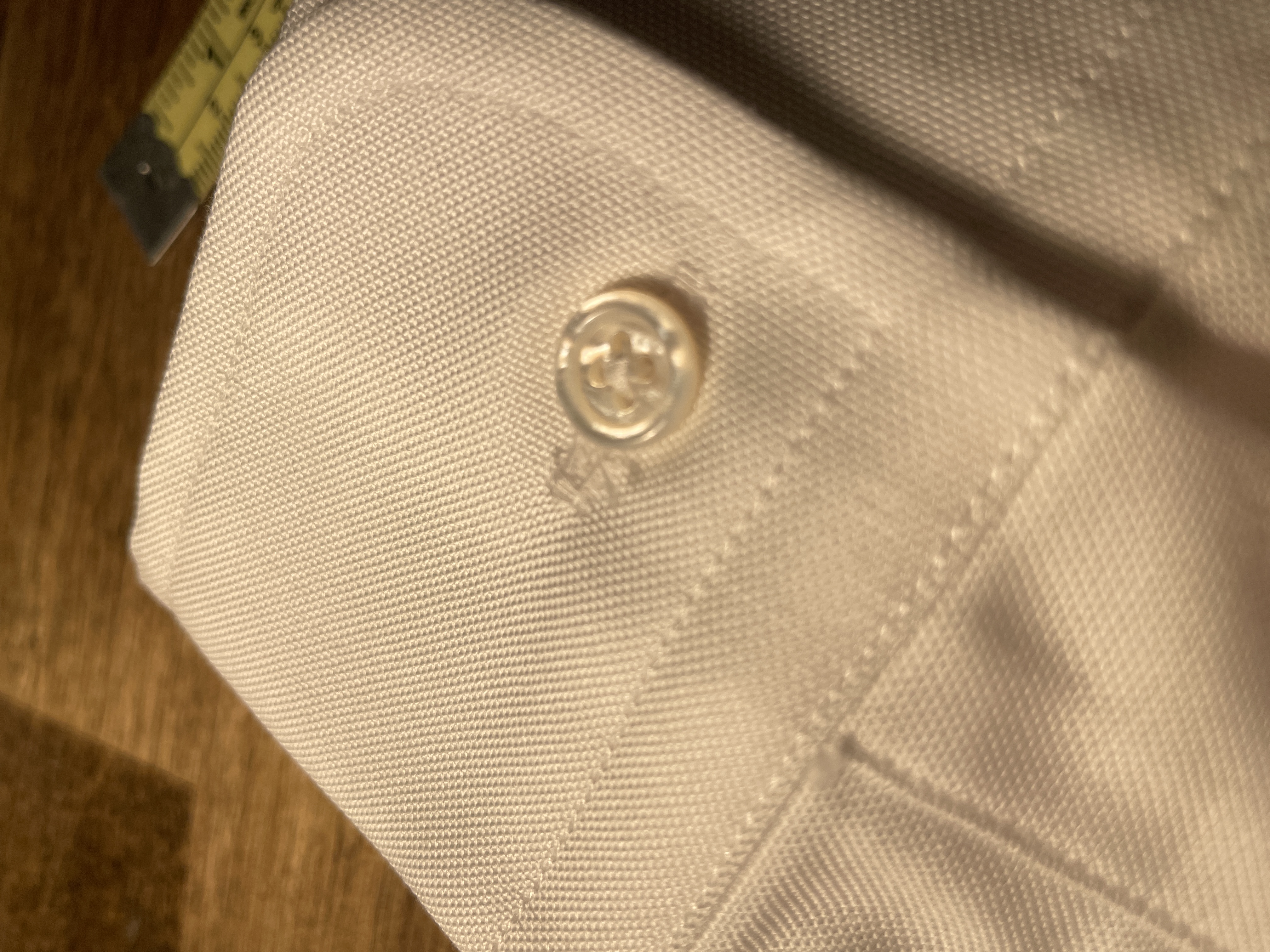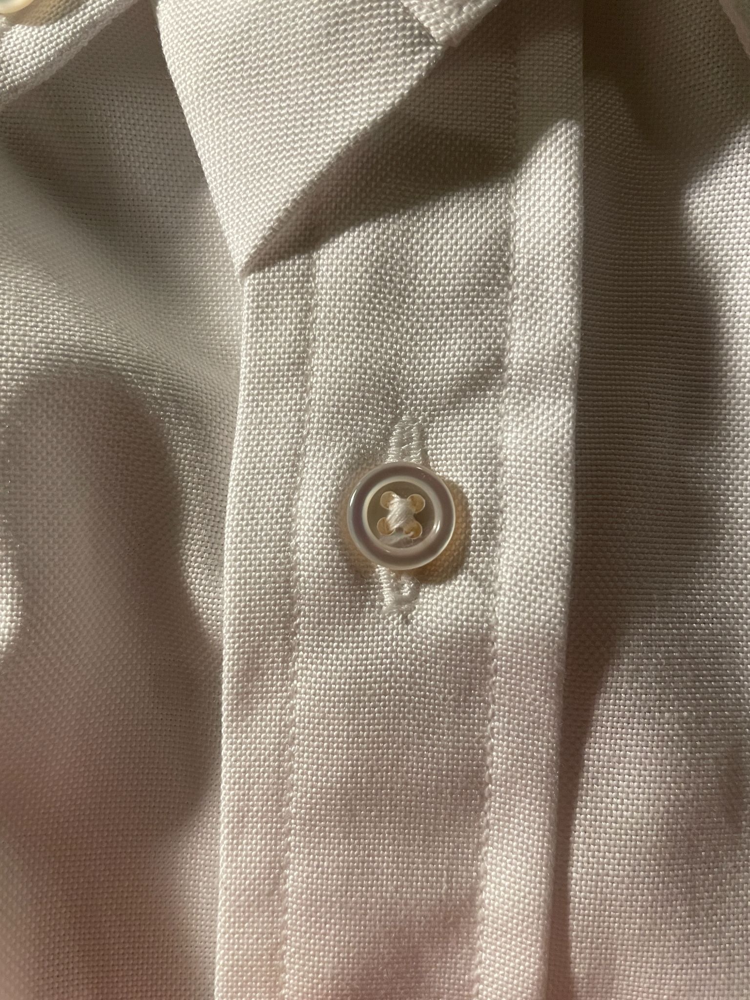 Here’s where the Brooks Brothers Oxfords stand out among the others in my closet: authentic Mother of Pearl buttons. It’s a special detail that you’d expect from a $200 shirt, and it’s a nice surprise when you get the shirt 40% off. I like that the buttons feel nice and firmly sewn on, too. Though the stitching leaves quite a bit to be desired, which I’ll get to later.