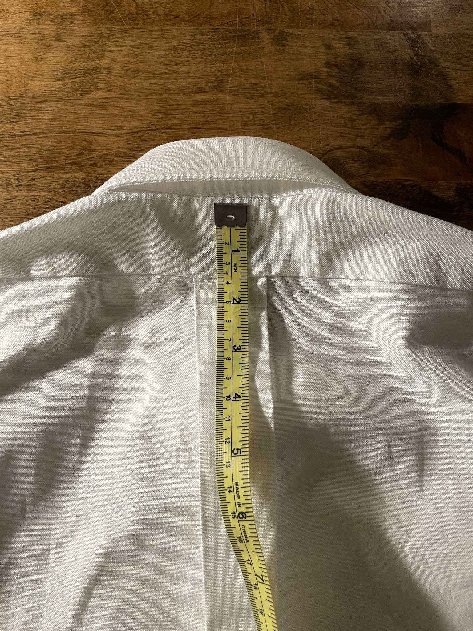 At 1.5”, the yoke is the shortest, by far, of any shirt in my closet. I imagine that the purpose of this is to give a dressier silhouette that slopes on the shoulders, but it stands out.