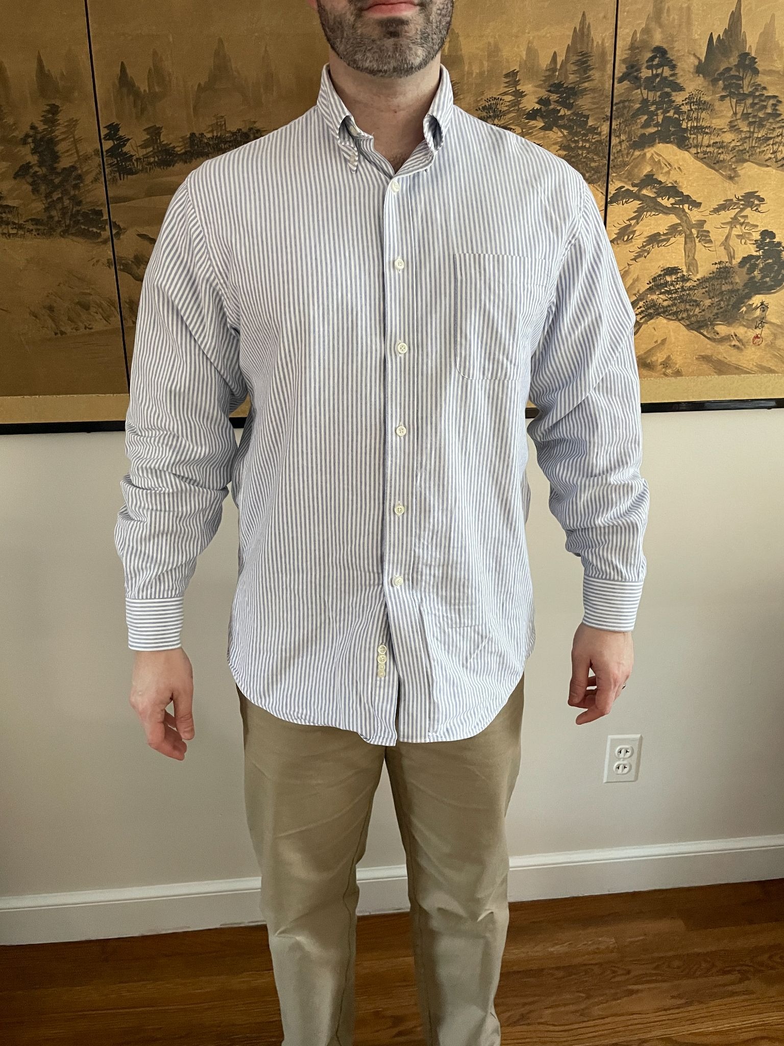 My only complaint with this shirt is the dated fit. A tad more snug in the arms and a more tapered fit at the waist, and this would be damn near perfect for me as an everyday Oxford shirt.