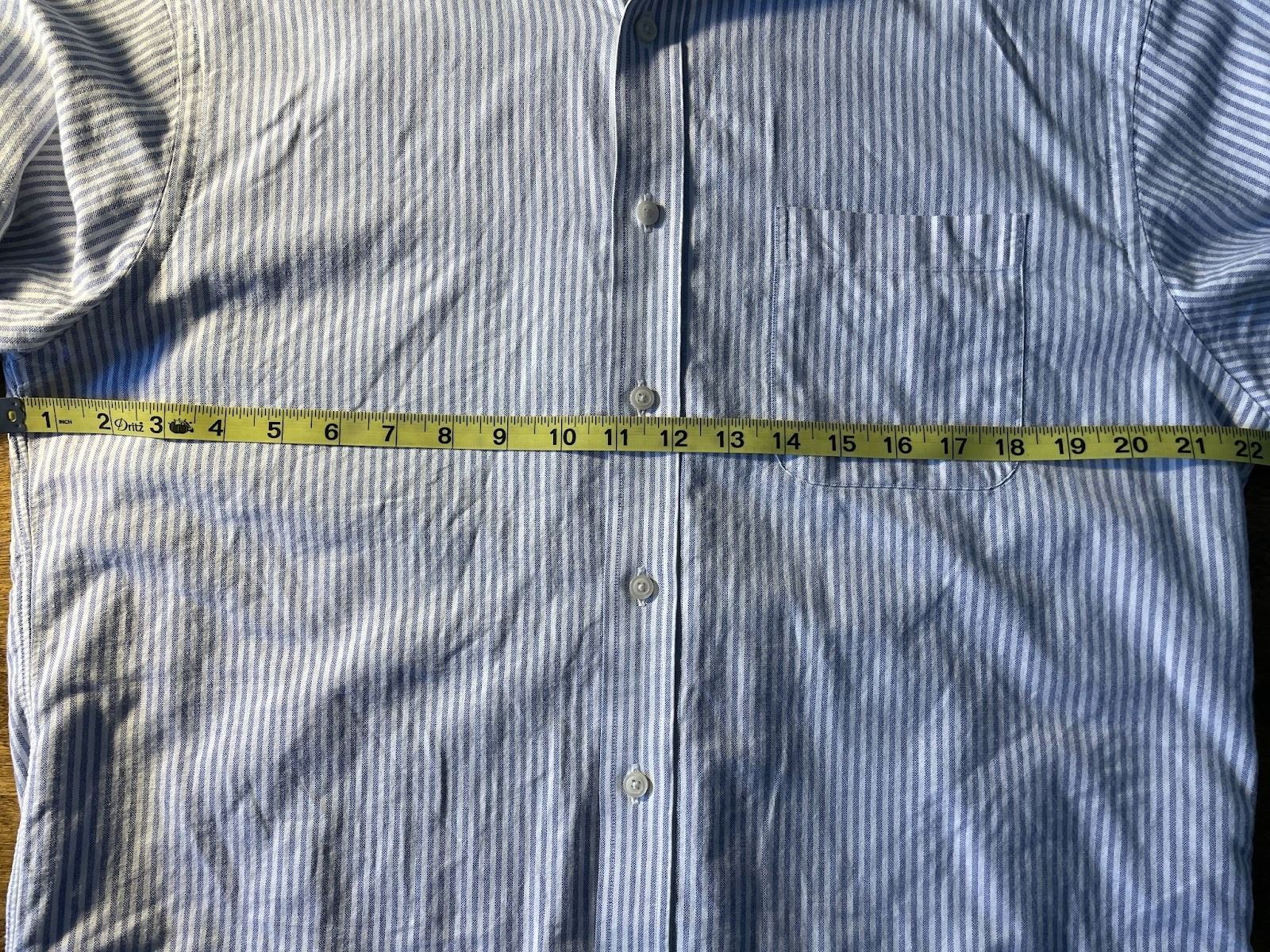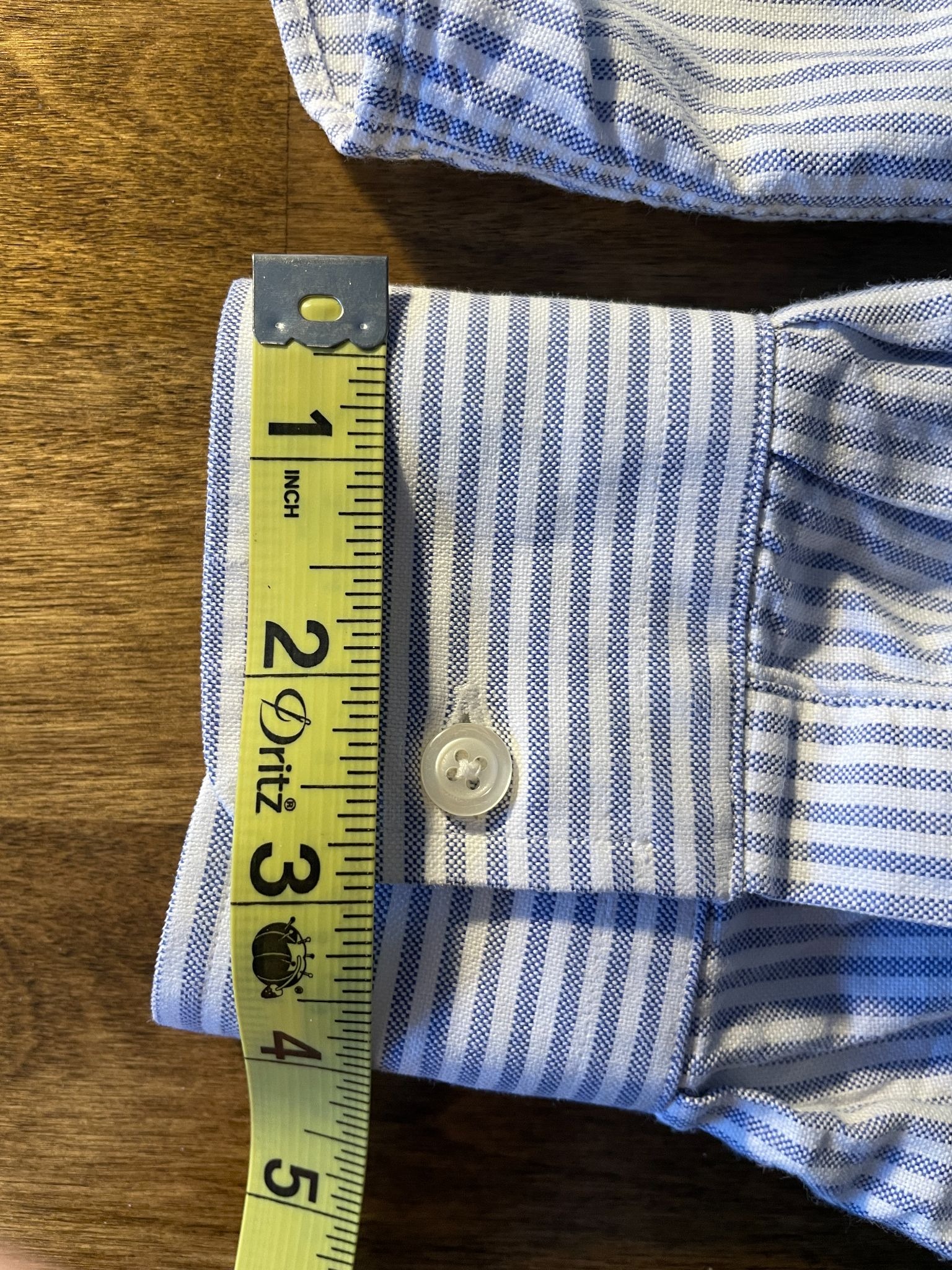 This shirt clocks in at a hearty 299.5 grams. A few heavier than the Brooks Brothers, which I'll admit surprised me given that the shirt has more material and thicker fabric. I think that the heft of the buttons on the Brooks Brothers shirt help its weight, given they're authentic Mother of Pearl to Lands' End's lightweight plastic.t