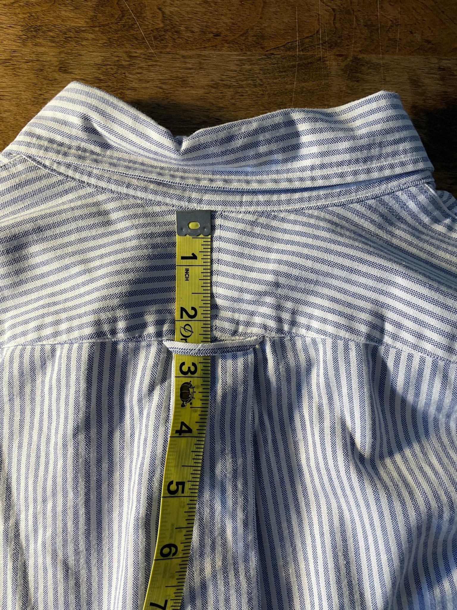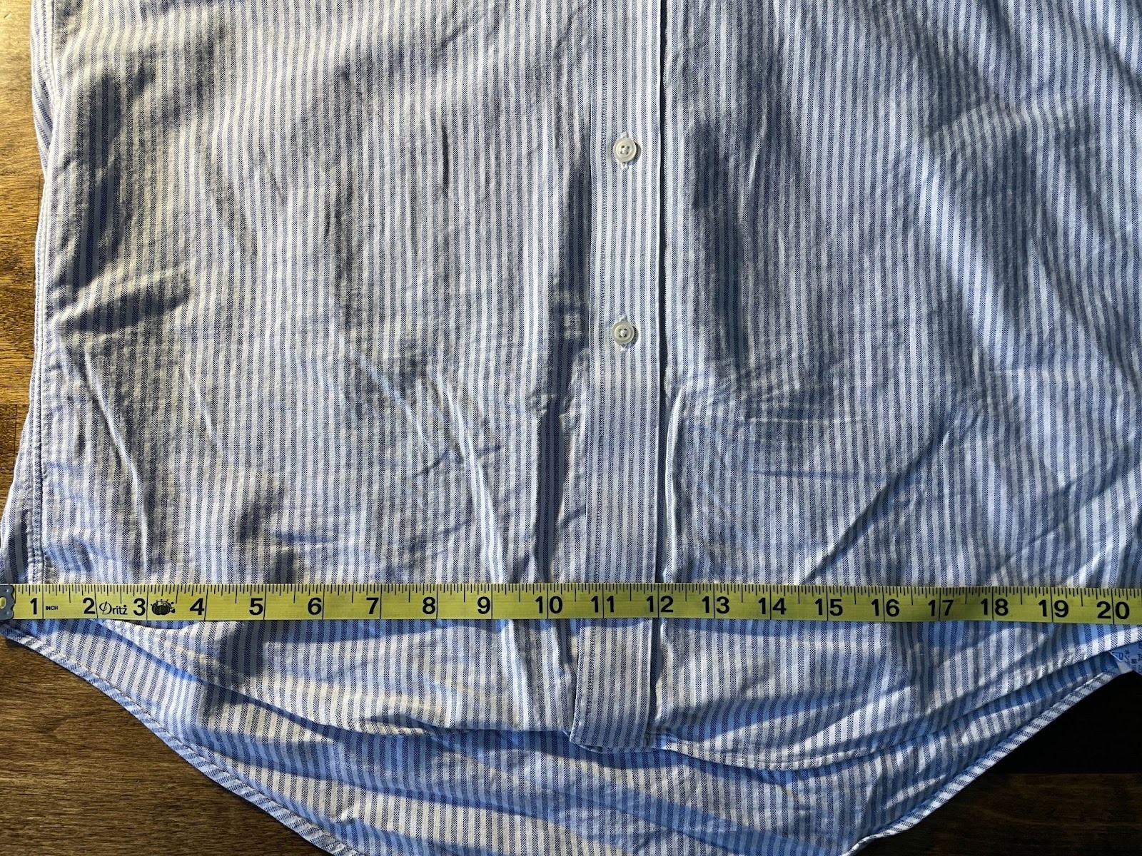 This shirt is very long compared to modern Oxfords, a full 30” down the front. As you’ll see in the fit pictures, it absolutely must be tucked in.